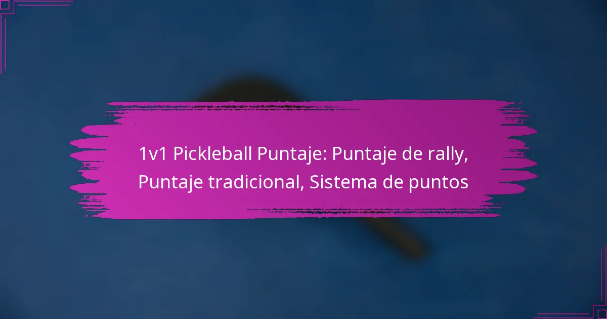 El sistema de puntuación en 1v1 Pickleball abarca varios métodos para rastrear puntos durante los partidos individuales, lo cual es esencial para que los jugadores desarrollen estrategias efectivas y mejoren su disfrute del juego. Los dos sistemas de puntuación principales son el sistema de puntuación por rally, donde ambos jugadores pueden anotar en cada saque, y el sistema de puntuación tradicional, donde solo el jugador que saca puede ganar puntos. Comprender estos sistemas ayuda a los jugadores a adaptar su estilo de juego y maximizar su ventaja competitiva.