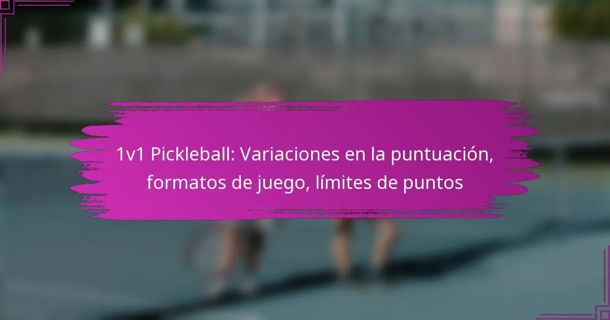 En el pickleball 1v1, las variaciones en la puntuación juegan un papel crucial en la configuración del juego y la estrategia, siendo los sistemas de puntuación tradicional y de rally los dos principales. El formato del juego también impacta cómo se ganan los puntos, influyendo en la estructura del partido y las tácticas de los jugadores. Además, los límites de puntos pueden diferir según el contexto, generalmente oscilando entre 11 y 21 puntos, con un requisito de una ventaja de dos puntos para ganar.